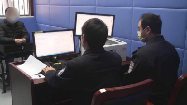 图说:犯罪嫌疑人接受审讯