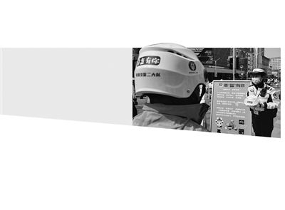 南京交警宣传佩戴头盔。