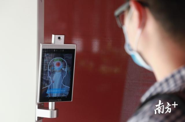 在深圳外国语学校初中部,设置了6条进校雨棚通道,其中3条为1.6米以上人员通道,3条为1.6米以下人员通道,师生按身高分流,并按站位标示每人间隔1米,依次通过人脸识别智能红外测温仪,符合要求后,测温仪会发出“正常”的提示音。学校还在临近检测通道处设置体温复测处、临时留观室,供特殊情况使用。