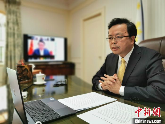 4月17日,中国驻菲大使黄溪连和中国援菲抗疫医疗专家组共同举行线上视频记者会,接受菲律宾主流和国际媒体记者采访。菲律宾通讯社、菲国家电视台、ANC电视台、GMA电视台、CNN菲律宾电视台、美联社等多家媒体记者参加。中国驻菲使馆供图