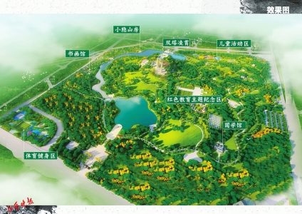 公园以自然式道路布局为主,核心景区为双塔凌霄,并新建清风竹晓书画院、丁香微雨观景亭廊、湖光塔影亭、沧浪抚水临水亭廊、桃蹊陌柳特色景观休憩场地、山色松风亭、叠翠观瀑跌水瀑布等景观。公园还设有红色教育主题纪念区、儿童活动区、体育健身区等,是周边方圆2公里以内唯一一座综合性公园。