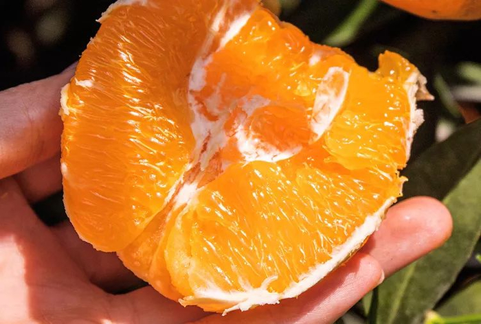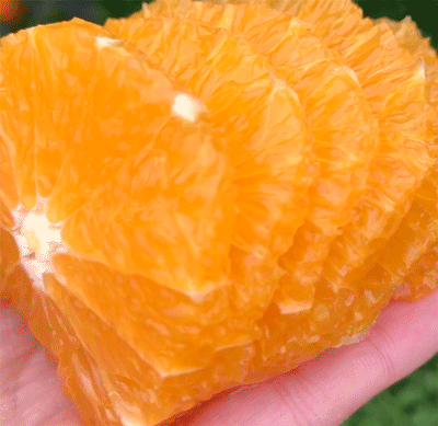 正宗的伦晚脐橙越过严寒的冬季,是难得的挂果鲜果,果实橙黄饱满,用手掰开果肉,新鲜饱满,果粒犹如充满阳光的气球,轻咬一咬,汁水一下就从薄薄的瓣膜中流出,像是在喝橙汁一样。