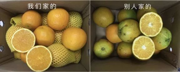 去年有个用户拍了他购买伦晚的对比图,看到简直惊讶,无味、无汁、不新鲜,伦晚这么好的品种,千万不要被假伦晚伤了用户的心,更是辜负了果农们辛苦一年的辛勤劳作。