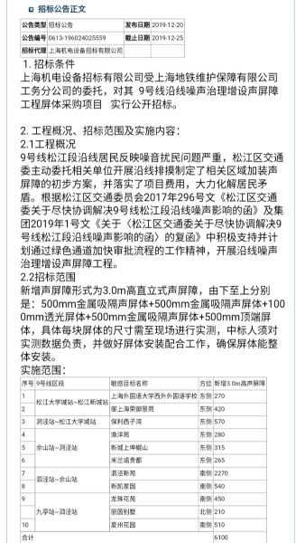 2019年12月20日,一份“受上海地铁维护保障有限公司工务分公司委托”发出的“隔音屏工程项目采购招标公告”,让居民们看到了希望。但仔细一看,不少人懵圈了。