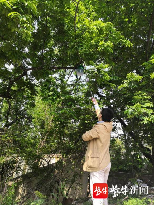 为此,目前南京主要从监测、防治及检疫监管三个方面开展美国白蛾防控工作,监测工作主要通过性诱捕器监测、人工踏查、诱虫灯监测等方式。美国白蛾性诱捕器,其主要工作原理为通过信息素引诱美国白蛾成虫进入桶中,无毒无害,无特殊气味。截至4月15日,美国白蛾性诱捕器已全部挂设到位。请市民们看到诱捕器后不要触碰或挪动,避免影响监测工作的顺利开展。