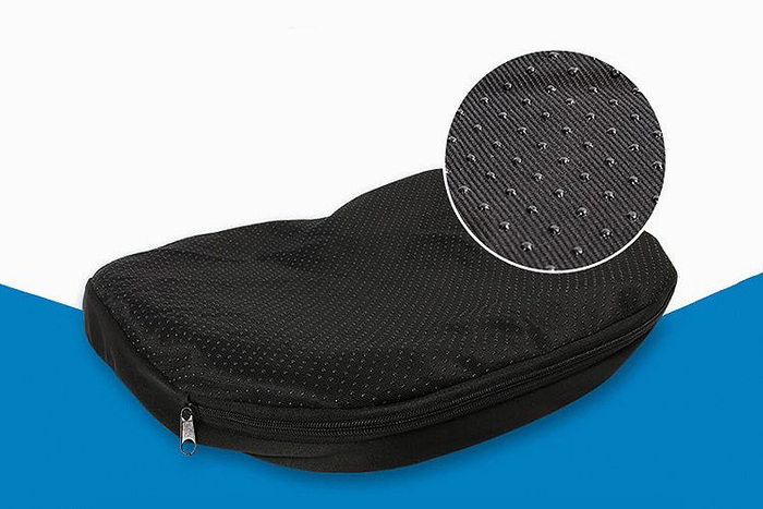 面料轻薄透气,表面还加入了2000颗小小磁疗石,套在坐垫上,坐上时候不会硌屁股,有助于血液循环,对前列腺有益,还起到预防痔疮、塑造美臀等作用。