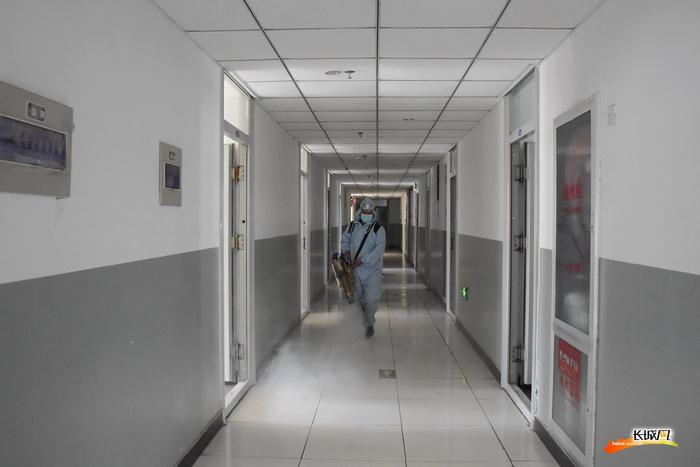 4月21日,石家庄市第二中学组织专业工作人员对教师和学生宿舍进行消杀防疫。长城新媒体记者 张晓明 摄影报道