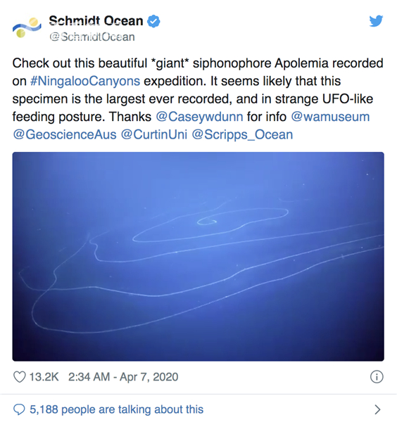 深海发现迄今为止最长动物 螺旋丝带状长达47米