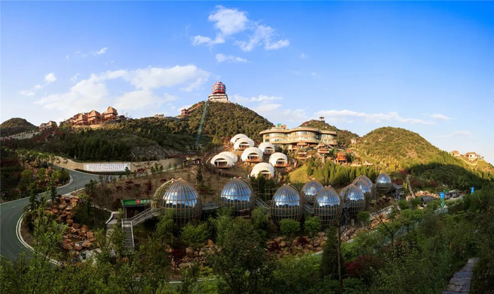 景区内还有以鸟巢、鸟蛋、恐龙蛋、酒杯为原型的建筑。相信第一次来到这里的驴友都会忍不住为这些奇特的建筑打卡。或者在梅花山情钟旁祈福敲钟与相爱的人相守一生。