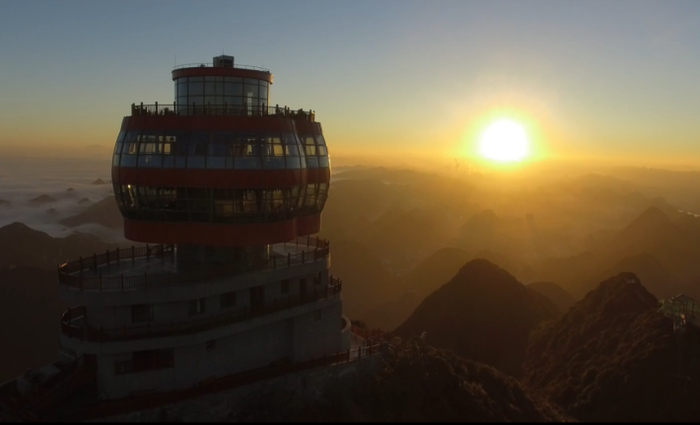 景区特别推荐的还有在旋转餐厅赏绝美日出。旋转餐厅坐落在景区的最高点,在这里可以俯瞰整个景区的景色,夜晚也是观看六盘水夜景的绝佳地。