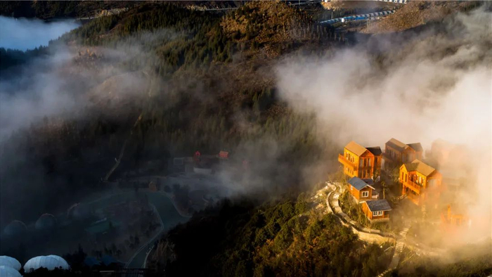 在这里,还可以看到云海奇景,云海包围着峰林,看着像一座座的孤岛,像是蓬莱仙境一般。和心爱的人,一边品味美食,一边欣赏城市美丽的风景,还能感受到地球的旋转,这将是世界上最浪漫的事情。