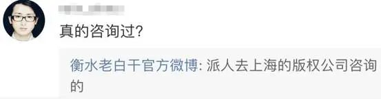 @衡水老白干 回复该网友称,派人去上海的版权公司咨询过。