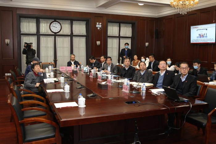 在上海交大徐汇校区总办公厅会议室,严隽琪听取了关于健康长三角研究院建设和电影《深潜》(暂定名)筹备方案的专题汇报。