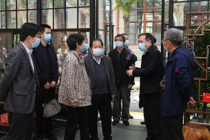 座谈交流前,严隽琪参观了开明画院,视察了老干部活动中心,与校老龄委常务副主任潘国礼、上海交大海派文化研究所常务副所长詹仁左等亲切交流。