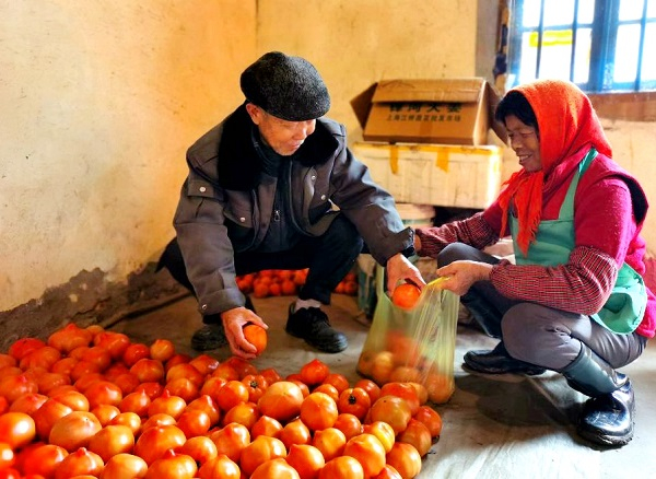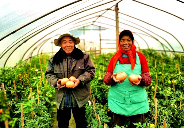 眼下正是番茄的采摘和上市季节。近日,记者在泥岗村西陈村民组田头一座大棚内,看到了正在采摘番茄的张桂平夫妇。