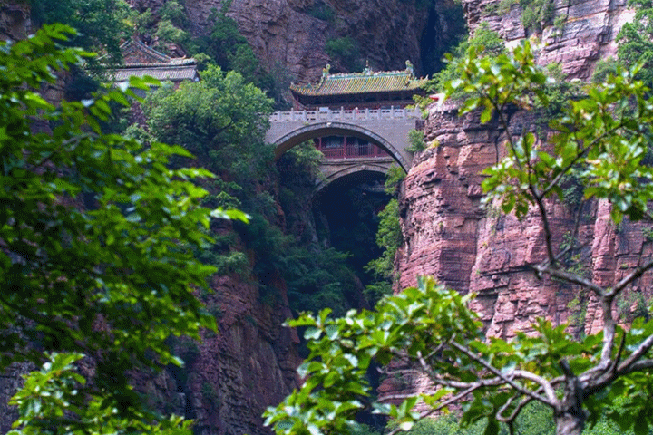 苍岩山位于河北省石家庄市西南50公里,地处井陉县境内,总面积63平方公里,高1039.6米。苍岩山景观丰富多彩,群峰巍峨,怪石嶙峋,深涧幽谷,古树名木,清泉碧湖,构成了奇特、幽静、秀丽的自然景观,享有“五岳奇秀揽一山,太行群峰唯苍岩”之美誉。