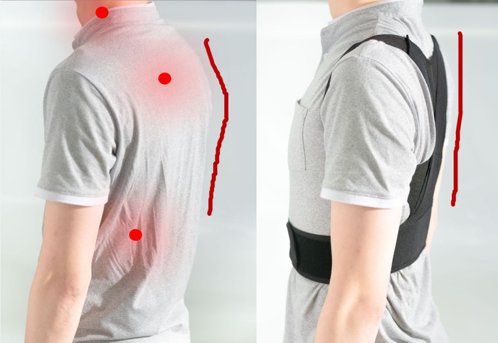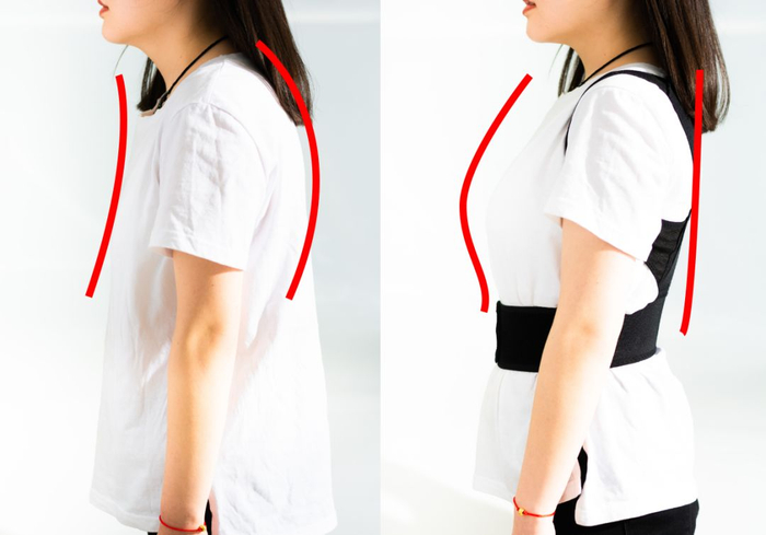 它是利用腰部的力量来反向拉伸肩背部,一穿上可以明显感觉肩膀被强力向后拉,腰部收紧挺直,自然而然挺胸抬头,整个人的气质立马感觉不一样了。