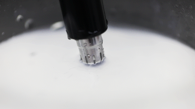 看看我们做的小实验,在水里浸过,出来依然高速旋转。