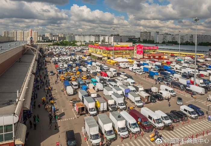 往日里柳布利诺市场的停车场停满了车。 @莫斯科商贸中心微博 图