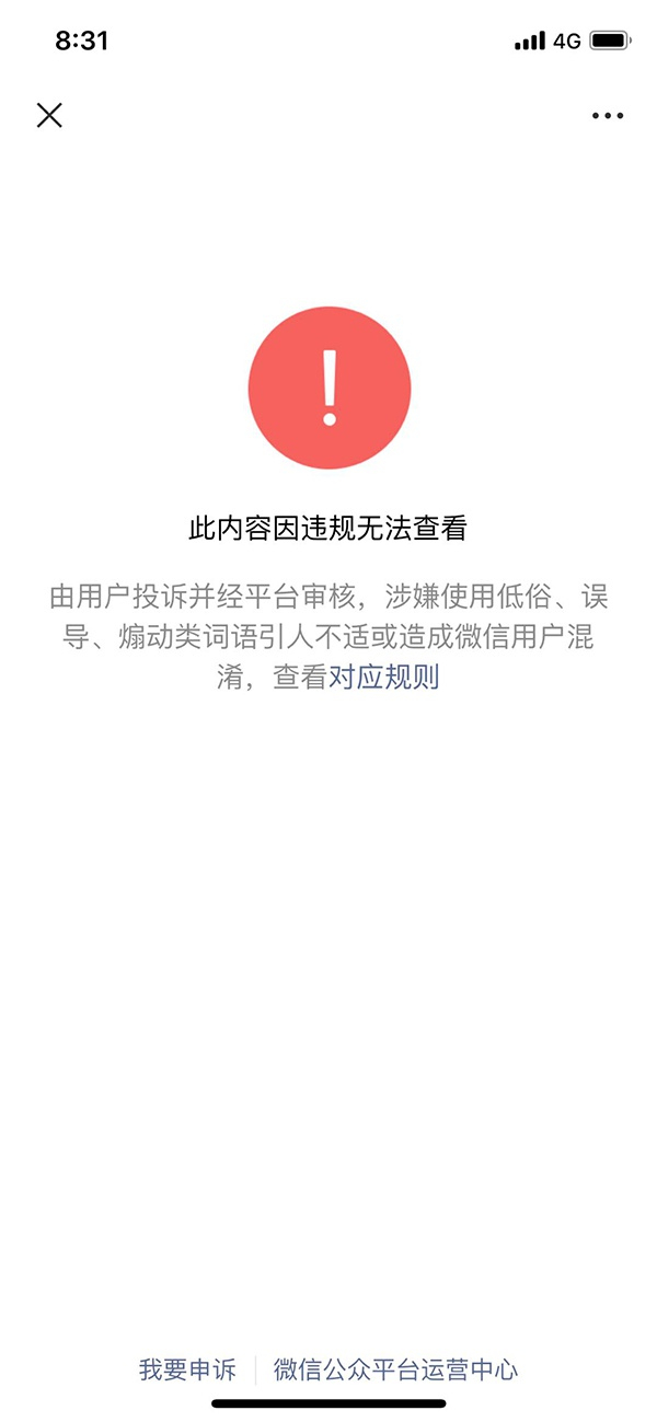 澎湃新闻查询《微信公众平台运营规范》4.11条显示,微信平台煽动、夸大、误导类内容包括“标题涉及国内外政治、军事、经济领域、国家政策的虚假或夸大内容等”以及“标题以浮夸的描述,从而煽动人群要或不要去做某行为”等等。对违规情节较轻的公众号,(微信)将对其名称、头像、功能介绍、图文消息等违规点进行处理;情节较重的,将限制其账号群发、关注、分享、搜索等功能,或直接限制账号使用。