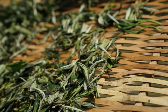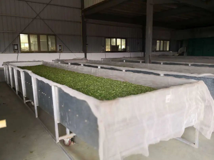 正在萎凋槽阴干的白茶
