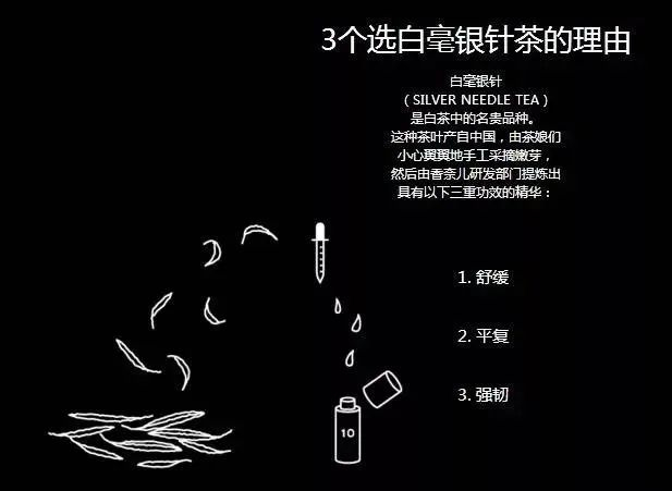 对于很多女性来说,这款茶的意外价值可能是抗干燥舒缓皮肤。香奈儿的10号乳液,采用的就是白毫银针提取物精华,能够舒缓易感不适肌肤,减轻压力并增强防护。这对于皮肤过敏,而且长痘的小伙伴来说,的确是不错的尝试。