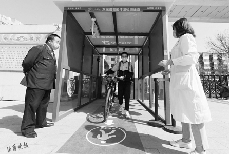 4月25日,太原实验中学6个班近300名初三同学通过智能体温检测通道入校。