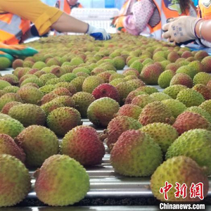 中新网海南陵水4月26日电 (记者 王晓斌)一骑红尘妃子笑,又是一年荔枝上市时。4月底,在海南陵水,由于北纬18度的光热优势,在其他省份的荔枝还只有绿豆般大小时,这里的妃子笑、白糖罂等品种的荔枝就已“抢鲜”上市。