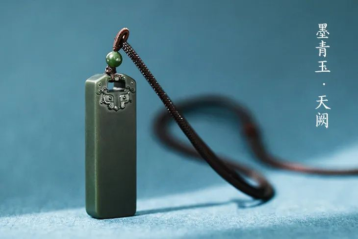 色如青松高雅,质油润如脂,灯下光晕呈青色无杂质,与普通墨青玉相比更多了一份静美。