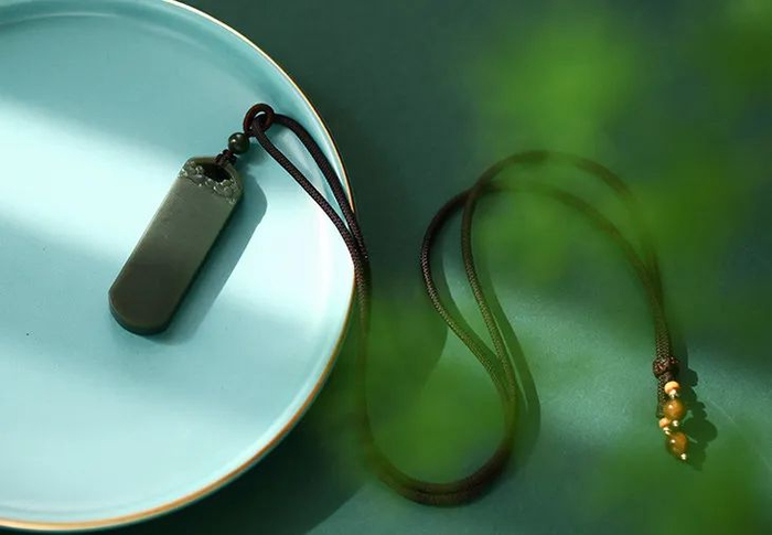 色如青松,质如润脂。这枚无事牌,方寸间保留了古代帝王之玉的“基业长青”的美好祝愿。