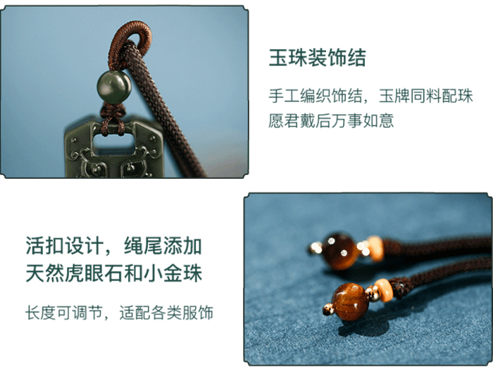 ▲上等玉器不追求过度抛光,磨灭质感;佩戴过程玉养人,人也养玉,如此佩戴无事牌会愈发光泽细腻。经过繁复精细工艺的玉牌,戴在身上,温润细致,由内而外散发着清雅之美。