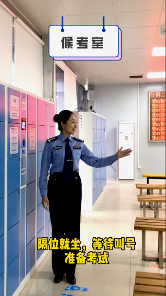 叫号后进行考前检测三部曲:1.金属测量;2.考前消毒;3.刷身份证分配考台。