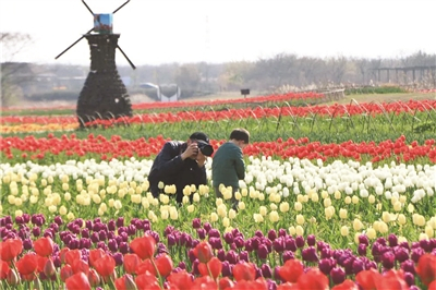 句容岩藤农场园区占地面积3600亩,今年岩藤农场从荷兰引进了200万株郁金香,栽培面积达100多亩,拥有世界和平、维兰迪、纯金、牛津、神秘范伊克、小黑人等40多个品种,20多种色系,颜色艳丽,形态各异,目前已有50亩郁金香进入盛放期。