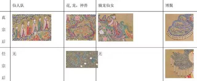 仔细观察《宋真宗后坐象轴》可以发现,刘娥所戴的礼冠并没有凤的形象,而是全部以龙代替。
