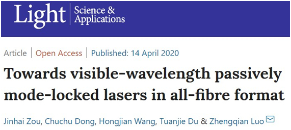 近日,厦门大学电子科学与技术学院罗正钱教授课题组在可见光超快光纤激光研究中取得重要进展,相关成果以“Towards visible-wavelength passively mode-locked lasers in all-fibre format”为题发表在国际光电子学权威期刊《Light: Science & Applications》(Light: Science & Applications 9:61,2020)上。
