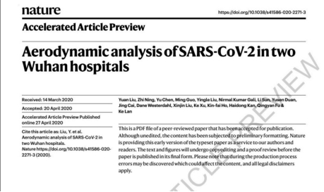 《自然》刊登蓝柯教授团队新冠病毒气溶胶研究成果