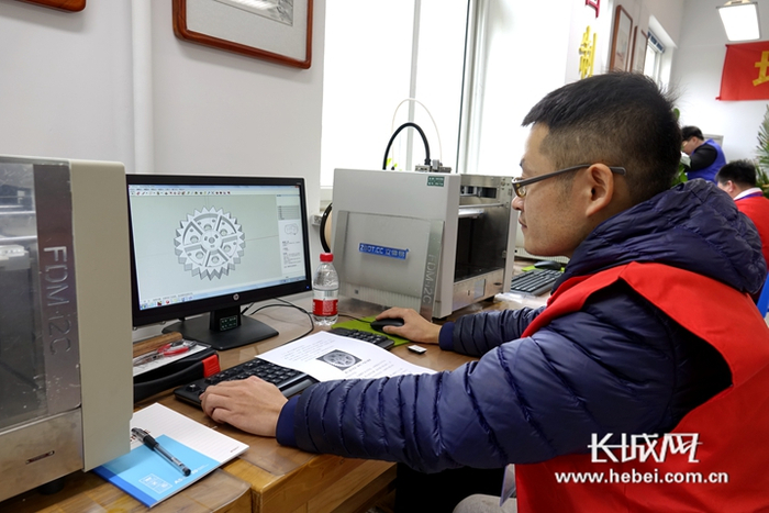 数十个方方正正的“魔盒”有序摆放在房间内。它个头不大,高约60厘米,一个小型的机械手臂挂在两根滑竿上,底座可以自由升降。2019年11月6日,在河北省总工会主办的2019河北大工匠“不服来战”晋级挑战赛3D打印智造技能比赛现场,9名3D打印高手正端坐在电脑前,把自己的设计通过3D打印机呈现出来。
