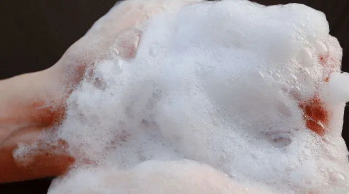 随便搓两下,细腻的泡沫像烟花一样噼里啪啦绽放,双手根本捧不下。