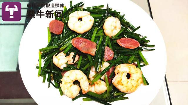 小苇杭做的韭菜苔炒虾仁十分诱人