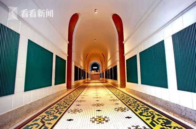 公寓每一层的彩色地砖,颜色搭配都不尽相同,书店在改造时也颇费了一些心思。走道设置多个拱门,依然保留原先公寓的格局。地砖以清新复古的黑白与薄荷绿的马赛克图案装饰,为搭配公寓原有的颜色纹样,书店前后进行了十几次配色,每块新瓷砖都由手工拼接而成。