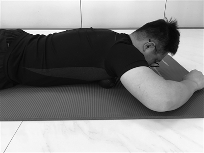 动作3 花生球放松胸肌。