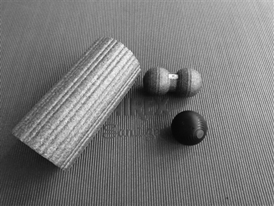今天小编就介绍一些针对胸椎灵活性训练的动作,帮助大家全方位改善姿态,缓解疼痛。当然你需要一些小器械(花生球、筋膜球、泡沫轴、瑞士球及瑜伽垫)来助力。下图中灰色为泡沫轴,蓝色为花生球,黑色为筋膜球。其余的练习动作小编将逐一为大家介绍。