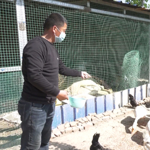 景县温城乡葛寨子村村民葛振宁,正在院子里忙着给蔬菜苗松土、浇水,院子另外一边架起的养殖钢圈里饲养了160只蛋鸡鹅和40只肉鸡鹅。看着眼前这一幅鸡肥鹅壮、生机勃勃的农家乐画面,葛振宁难掩心中喜悦。他说:“扶贫干部帮我贷了小额贷款,我用这笔贷款买了种子、鸡苗、鹅苗,盖起了养殖棚。”