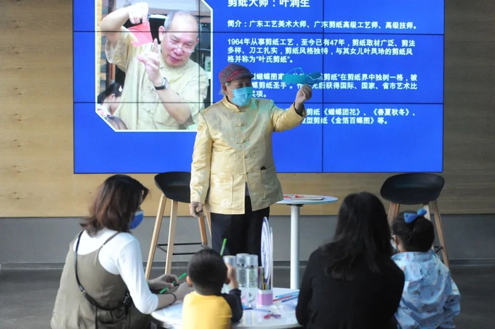 在“环保”主题的号召下,家长及小朋友们积极参与,现场除了一汽-大众讲师分享新迈腾GTE的环保性能,还有重量级的非遗剪纸大师叶润生亲自教小朋友们剪纸。
