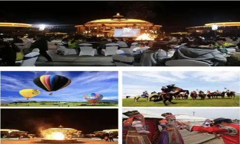 有独具满蒙特色的万马奔腾和悦广场、蒙古图腾苏鲁锭广场、马头琴广场以及御马苑停车场等景观。酒店配套有:房车营地、射箭、热气球、飞机、马术体验表演、小火车、星空房、儿童乐园等娱乐设施(分季节开放)。