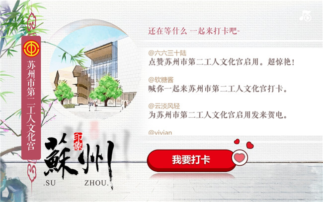 4月28日,苏州市庆祝五一国际劳动节暨第二工人文化宫(一期)启用仪式隆重举行。苏州市第二工人文化宫正式启用啦!苏州市总工会、苏州市第二工人文化宫联合扬子晚报视评工作室推出H5交互产品——《匠心之美,邀你沉浸苏式职工文化新乐园》,欢迎你扫码来打卡。