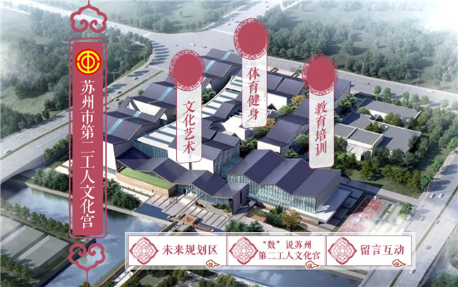 作为苏州市2020年实事项目,苏州市第二工人文化宫(一期)以文化服务、公益普惠为目标,共开设职工服务、文化艺术、体育健身、教育培训和配套服务五大功能区,设置了影院、剧院、羽毛球馆、篮球馆、乒乓球馆、游泳馆、健身馆等各类场馆,以及多功能厅、会议室、培训教室等。