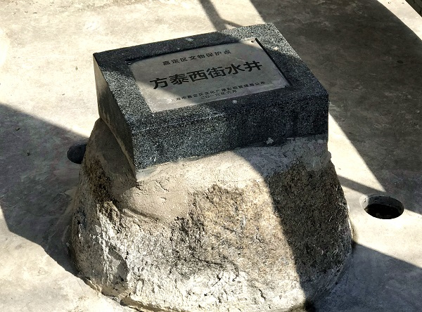 西街水井位于方泰村西街42号门前东侧。据《嘉定区不可移动文物汇编》记载, 该井为青砖井壁,武康石圆形素面井圈,给人以古朴沧桑之感,井圈外壁局部缺损,但整体保存较好。从井壁用砖及井圈材质考察,该水井应建于元末明初,算起来距今已有600多年。