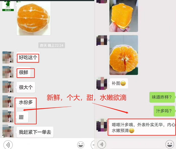 “新鲜,个大,甜,水嫩欲滴”