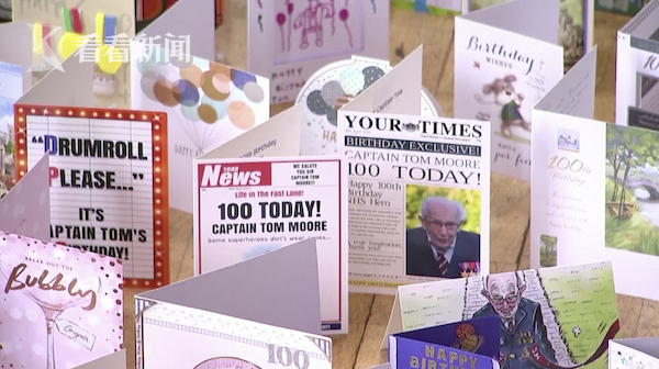 最近,英国中部贝克福德郡一所学校的礼堂变成了贺卡的海洋,一张张生日卡和手绘画加在一起已经超过了125000张。这些卡片是世界各地的网友寄给当地二战退伍老兵汤姆·摩尔的,庆祝他在4月30日迎来100岁生日。